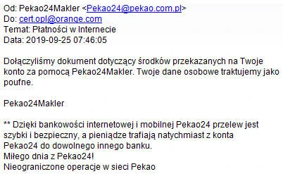 W polskich internautów wymierzona została kolejna kampania phishingowa. Tym razem e-złoczyńcy wysyłają do wybranych ofiar wiadomości e-mail podszywające się pod pocztę od Domu Maklerskiego Pekao.