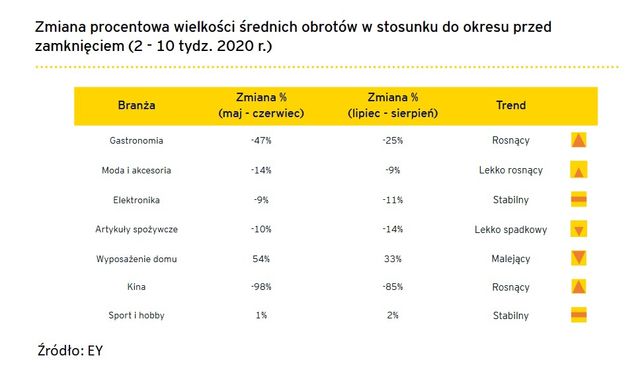 - okres lockdownu najmniej dotknął małe sklepy, najbardziej zaś galerie handlowe oferujące usługi inne niż niehandlowe,